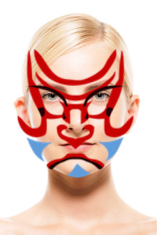 一番目立つ真っ白なおしろいを塗った顔高貴な身分恋愛系の顔といえます。ただし極端な白塗りは道化役や極悪人で使われるものです。
